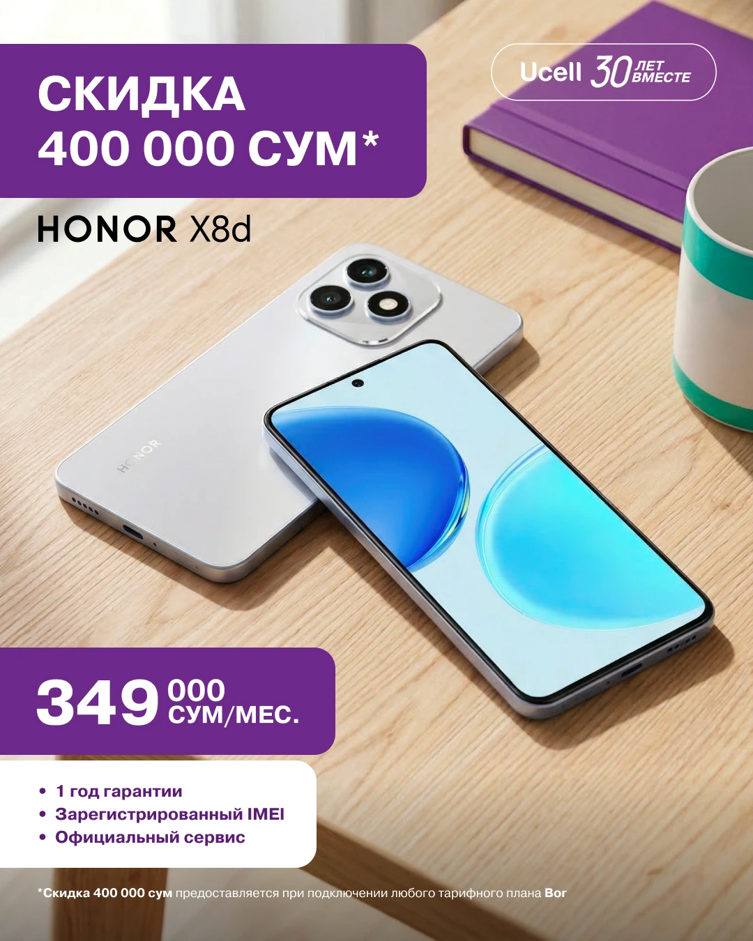 В честь 30-летия компании в офисах продаж Ucell действует специальное предложение на смартфон Honor X8d.